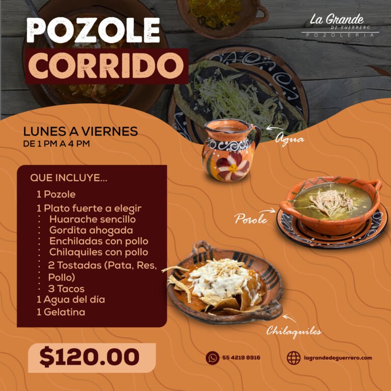 Si buscas una comida completa, deliciosa y con el auténtico sabor de Guerrero, nuestra promo «Pozole Corrido»…
