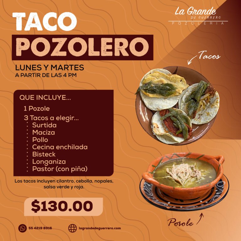 Si eres amante del auténtico sabor guerrerense, nuestra promo «Taco Pozolero» es para ti. En La Grande…